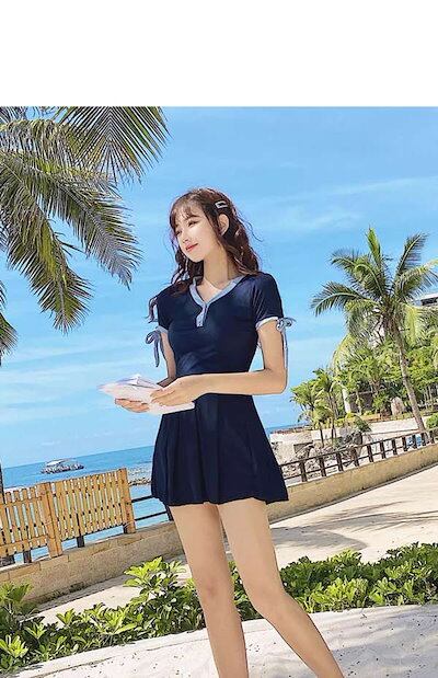 ワンピース水着 服みたいな 水着 2点セット 半袖 リボン ワイヤーなし パッド付 レディース 着?せ シンプル 写真映え 撮影用 海 夏 サマー プール リゾート 可愛い オシャレ 旅行 温泉 大人