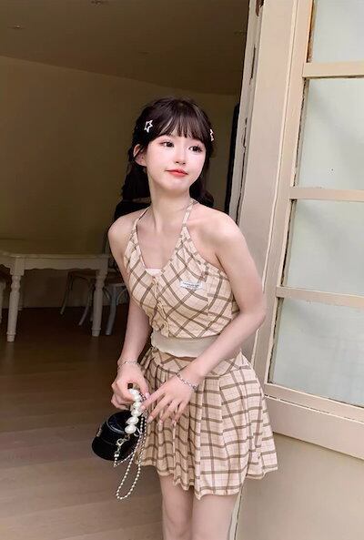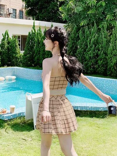 タンキニ レディース 2点セット チェック柄 Vネック 袖なし ワイヤーなし パッド付 着?せ シンプル セクシー 写真映え 撮影用 海 夏 サマー プール リゾート かわいい 旅行 温泉 大人 女性