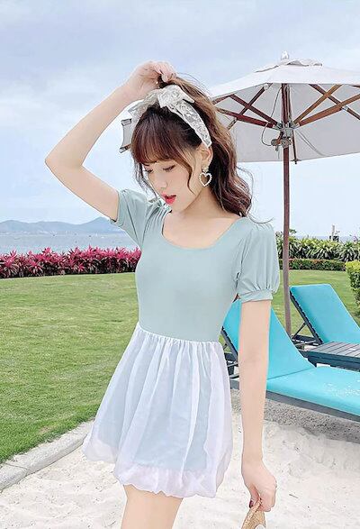 ワンピース水着 服みたいな 水着 半袖 ワイヤーなし パッド付 レディース 着?せ シンプル セクシー 写真映え 撮影用 海 夏 サマー プール リゾート かわいい 透け感あり 旅行 温泉 大人 女性