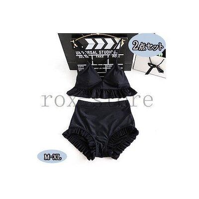 水着セット 水着レディース水着ビキニ上下セットビキニブラとビキニショーツの上下2点セットパッド付きワイヤーありバスト寄せ盛り谷間ブラック