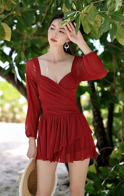 高品質!水着 ワンピース レディース 体型カバー 長袖 セクシー 動きやすい 大きいサイズ ワイヤー入り ミセス オトナ女子 小胸 バストアップ パッド付き シンプル 可愛い 夏物 オールインワン 温