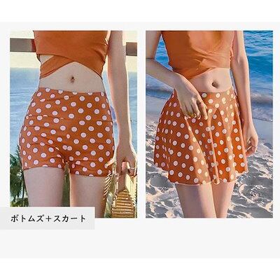 服みたいな 水玉柄 パッド付 セクシー ドット柄 3点セット レディース 水着 タンキニ水着 ワイヤーなし