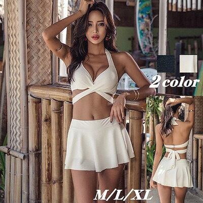 クロスデザインビキニ 水着 新作 レディース ビキニ 2点セット アンダー調節可 ホルターネック ワイヤー 無地 可愛い セクシー おしゃれ 小胸もピッタリ ブラック ホワイト 海 夏 M L XL