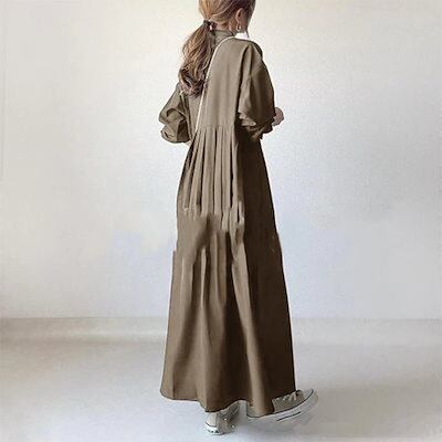 シャツワンピース ワンピース レディース ロングワンピース マキシワンピース ギャザー マキシ丈 大人可愛い 大きいサイズ きれいめ 夏服