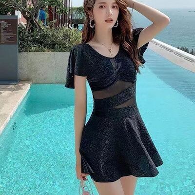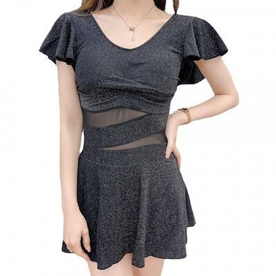 水着 体型カバーセクシーキラキラ半袖夏服レディースミニワンピース水着たるみ防止体型カバーノンワイヤスイミングウェア韓国ファッションビキニ