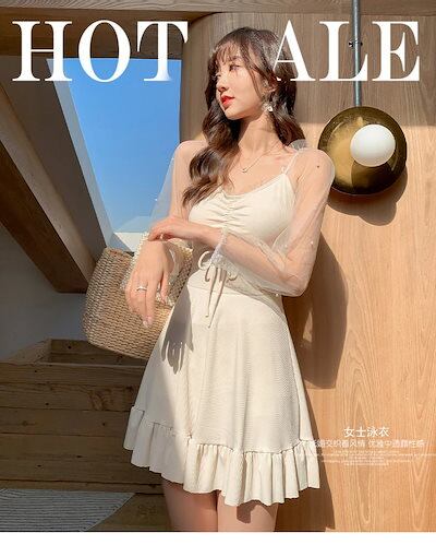 24 ビーチツアー 水着 ワンピース水着 セーフティパンツ ノンワイヤー パット付き レース 長袖日よけ パンチラ防止大きいサイズ 韓国 水着 レディース スイムウェア 水着 ビーチツアー ワンピ