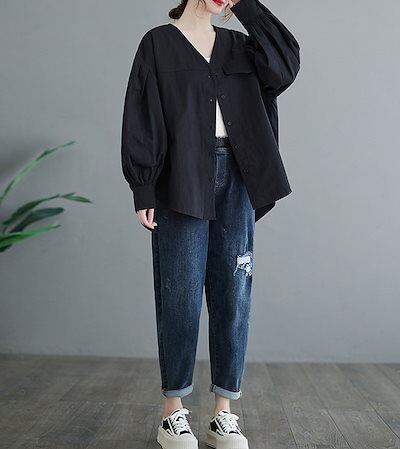 長袖シャツ レディース 長袖 チュニック vネック 前開き 無地 ボタン トップス 羽織り 体型カバー ゆったり カーディガン 大きいサイズ オシャレ 通勤 シャツ フォーマル ゆったり 白シャツ シ