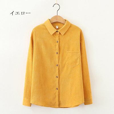 コーデュロイ シャツ レディース 長袖シャツ 長袖 折り襟 前開き ポケット付き トップス 無地 ボタン タック 白シャツ 通気 カジュアル 長袖ブラウス きれいめ おしゃれ 人気 ブラウス ゆったり