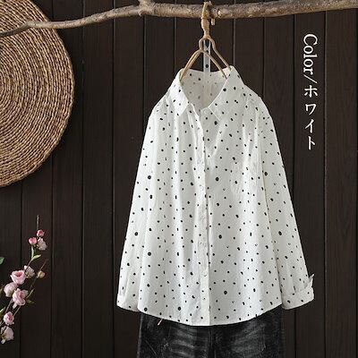 ドット柄 総柄 シャツ 長袖 レディース 襟付き きれいめ フリル 綿 コットン 羽織る 羽織れる トップス レギュラーカラー シャツブラウス ボタン 前開き 柄 ギャザー 体型カバー ゆったり ライ