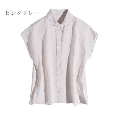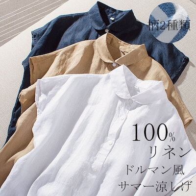 リネンシャツ ノースリーブ 麻 レディース シャツブラウス 夏 ノースリ 麻 シャツ ボタン止め 全開 トップス サマー ブラウス サイドスリット 体型カバー ゆったり サマーシャツ ドルマン風 涼し