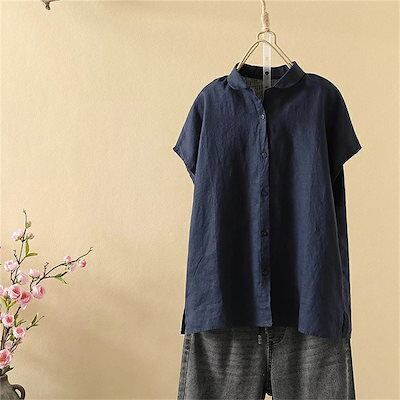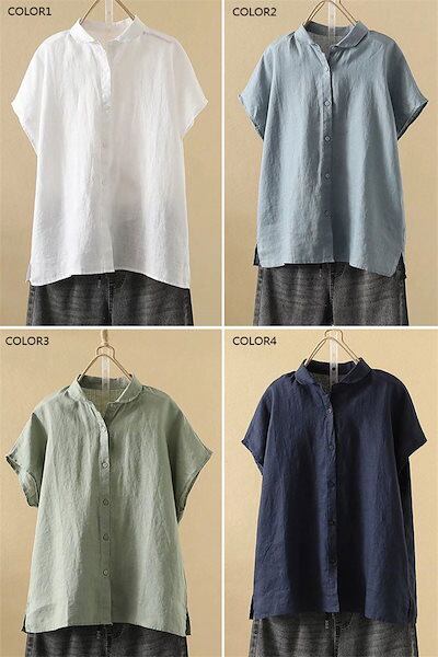 綿シャツ レディース シャツ 半袖 フレンチスリーブ 夏 おしゃれ 白シャツ シャツブラウス とろみ ドルマンスリーブ ドロップショルダ 前開け ボタン止め 折り襟 開襟 コットン 夏シャツ トップス