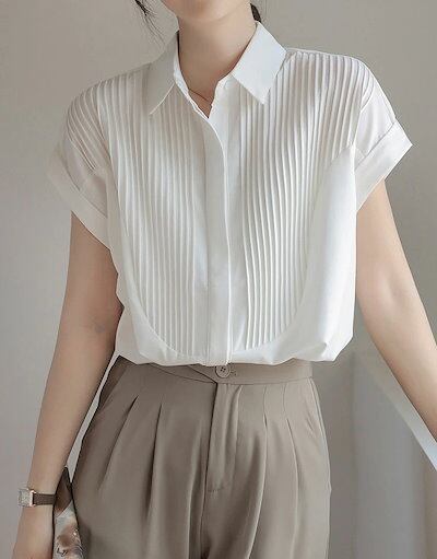 半袖 シャツ ブラウス レディース シャツブラウス 半袖ブラウス 半袖シャツ トップス 半袖トップス ピンタック タック チュニック 夏 折り襟 ゆったり 前開き ボタン留め 白シャツ ホワイト きれ