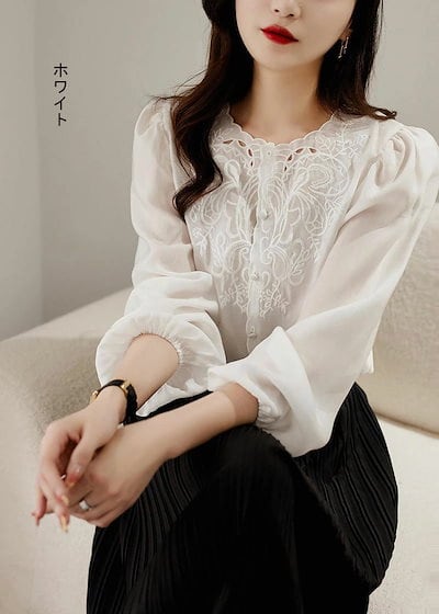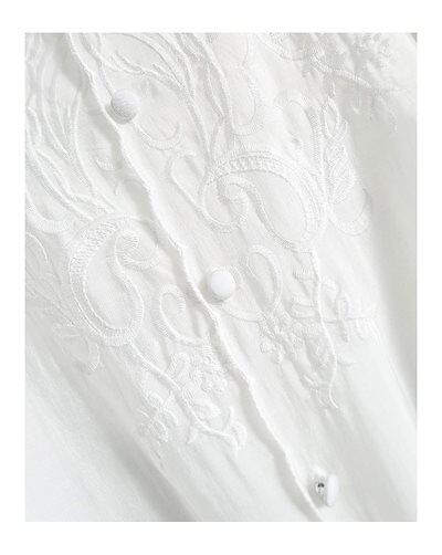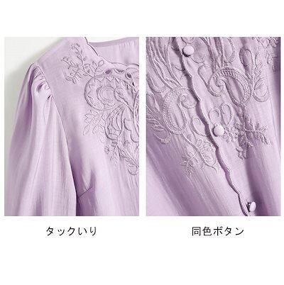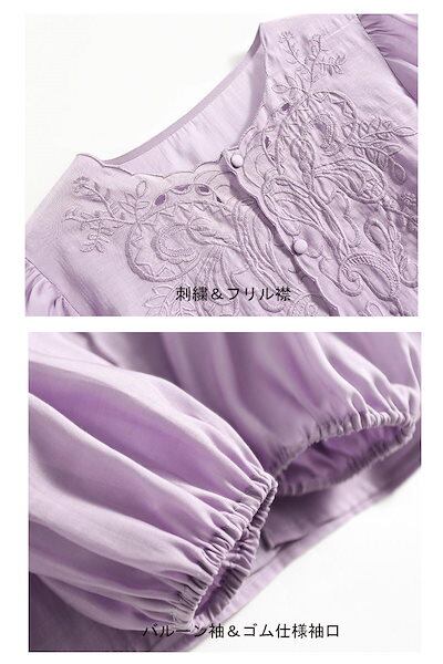 刺繍 ブラウス 長袖 レディース シャツ トップス フリル襟 シャツブラウス ノーカラー バルーンスリーブ ゆったり 前開き ボタン おしゃれ 薄手 長袖tシャツ 羽織り 羽織る 春 夏 秋 30代