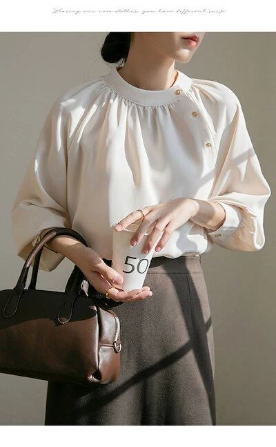 ブラウス 長袖 レディース シャツブラウス オフィス シャツ とろみシャツ フォーマル 長袖 パフスリーブ トップス プルオーバー タック ボタン 無地 シャツブラウス インナー カジュアル 春 着痩