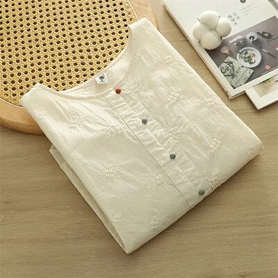 シャツ ブラウス コットン レディース 長袖 シャツ ブラウス 刺繍 綿 花柄 春 夏 秋 シャツブラウス トップス 配色ボタン ゆったり 体型カバー オリジナル 上品 きれいめ 通勤 オフィス 着回