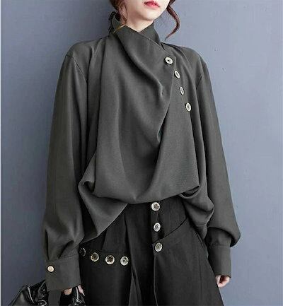 ブラウス レディース シャツ 長袖 きれい おしゃれ シャツブラウス 襟ボタン付き 長袖 トップス フォーマル オフィス カジュアル シフォン tシャツ 無地 ハイネック 着回し 上品 きれいめ 春