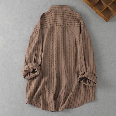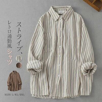シャツ ブラウス レディース 新作 長袖 ストライプトップス シャツブラウス シャツ襟 前開き 羽織り ボタン カジュアル 大きいサイズ 体型カバー ゆったり 通勤 OL オフィス レトロ 着痩せ シ