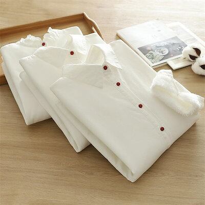 裏起毛 シャツ 長袖 レディース 秋冬 綿 コットン 裏起毛シャツ 選べるネック レギュラーカラー フリルカラー 丸襟 トップス 配色ボタン シャツブラウス 秋 冬 通勤 大きいサイズ ゆったり 着回