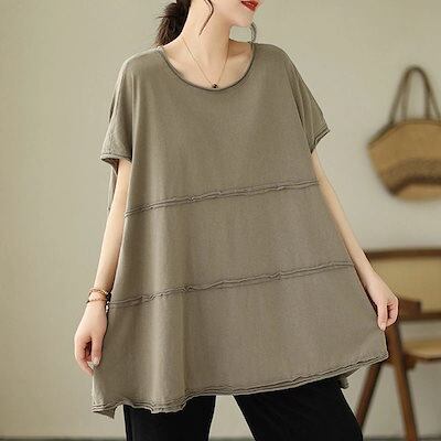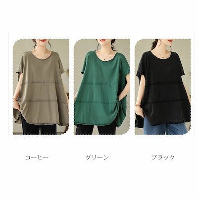 チュニック tシャツ 半袖 レディース トップス Tシャツ カットソー ボートネック 丸首 ブラウス 半袖tシャツ 大きいサイズ ロングtシャツ tシャツ フレンチスリーブ ロング 無地 aライン 切