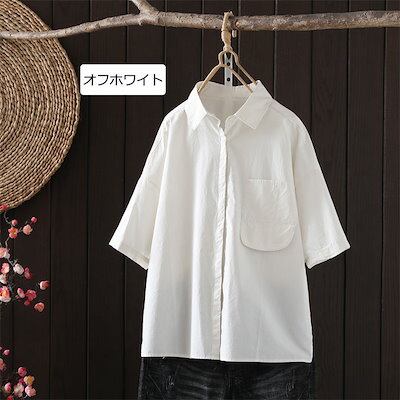 半袖シャツ 白シャツ 無地 シャツ ブラウス レディース シャツブラウス チュニック 通勤シャツ 無地シャツ 夏 涼しい アウター ホワイトシャツ ベーシック 7分袖 通勤 折襟 前開け シャツ 綿