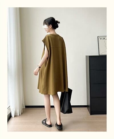 チュニック tシャツ レディース フレンチスリーブ グルーネック Aライン Tシャツ トップス 無地 膝丈 カットソー チュニック フレンチ袖 ワンピース 大きいサイズ ゆったり 体型カバー リラック