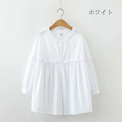 シャツ 7分袖 チュニック 白シャツ レディース 夏 七分袖 シャツブラウス チュニック 薄手 ホワイトシャツ 秋 トップス 羽織り フリル ギャザー ゆったり ドルマンスリーブ 無地