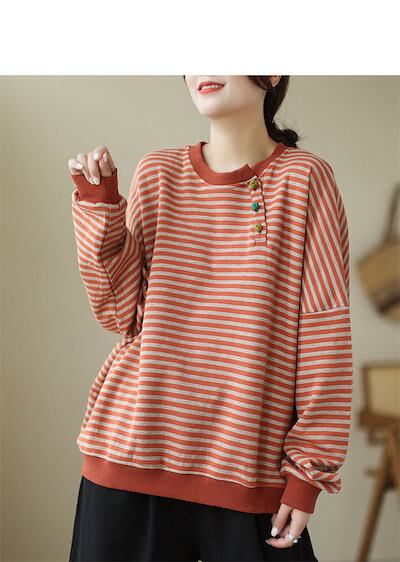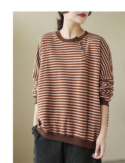 パーカー プルオーバー レディース トップス tシャツ ブラウス シャツブラウス 長袖 秋 ボーダー柄 シャツ 長袖シャツ チュニック ゆったり 大きいサイズ 体型カバー ラウンドネック ボタン飾り