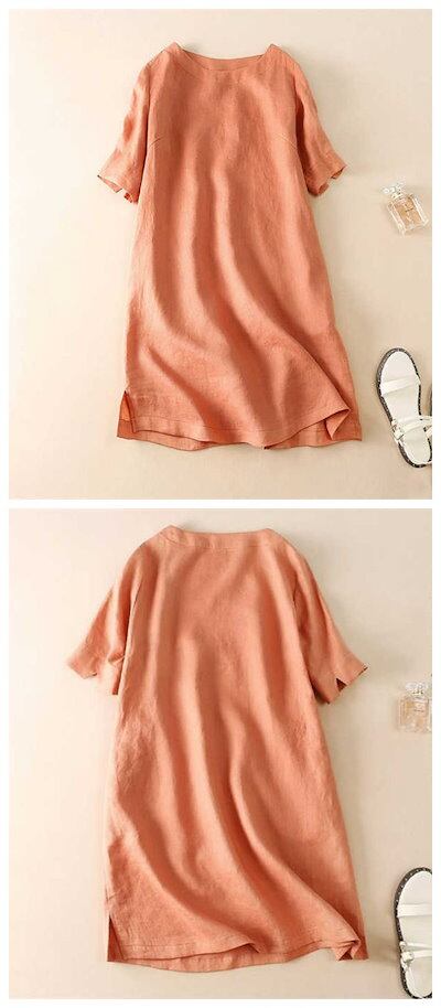 チュニック ワンピース ブラウス シャツ tシャツ ワンピース チュニックワンピース レディース 夏 ロング トップス 綿麻 コットンリネン 無地 半袖 大きいサイズ ゆったり カジュアル 部屋着 プ