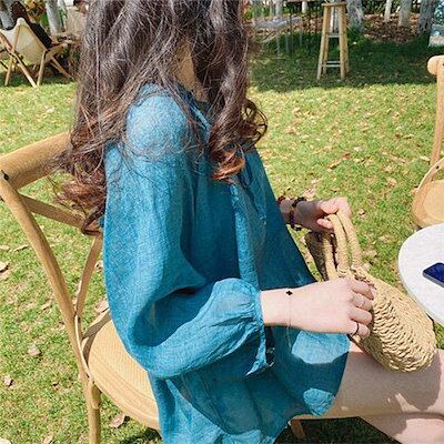 リネンブラウス チュニック 長袖 シャツ レディース 春夏 綿麻風 シャツブラウス 大きいサイズ ゆったり トップス 体型カバー 涼しい 薄手 大人 可愛い Vネック ギャザー プルオーバー フ 薄手