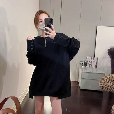 ホワイト アンダーウェア 長袖ブラウス スウェット レディース インナー セミロ ング トップス デザイン感 そで口 ラウンドネック Tシャツ