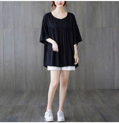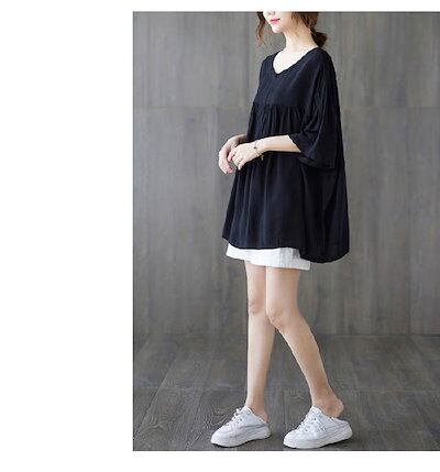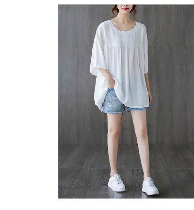 チュニック ブラウス レディース Tシャツ ロング 夏 秋 トップス Aライン チュニック Tシャツ 半袖 おしゃれ 体型カバー 大人 おしゃれ 無地 大きいサイズ 薄手 透け感 シンプル ゆったり