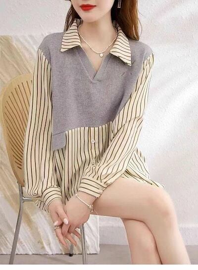 配色 プルオーバー レディース カットソー チュニック トップス 切り替え 長袖 大きいサイズ ロンT 体型カバー きれいめ お洒落 カジュアル ゆったり 大人 かわいい デザイン バイカラー 春 秋