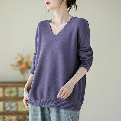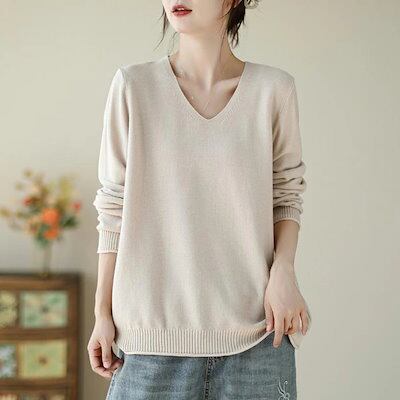 ニットセーター レディース トップス vネック ニット ニットカットソー セーター 長袖 プルオーバー ニットチュニック チュニック キレイめ 春 秋 冬 インナー 大きいサイズ 体型カバー ゆったり