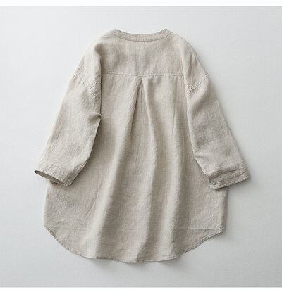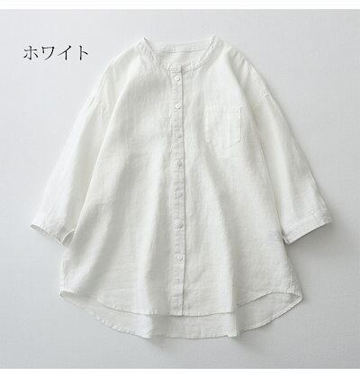 チュニック シャツ レディース 綿麻風 シャツブラウス 7分袖 前開き トップス 無地 羽織り チュニックシャツ ボタン タック ブラウス ゆったり 体型カバー カジュアル ロングシャツ きれいめ オ