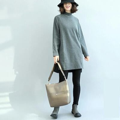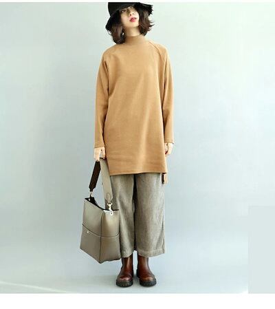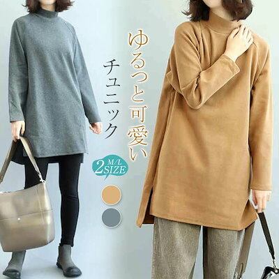 チュニック レディース 長袖 カットソー チュニック 大人可愛い Tシャツ ハイネック 長袖tシャツ トップス インナー シンプル 着痩せ 大きいサイズ ゆったり 体型カバー サイドスリット おしゃれ