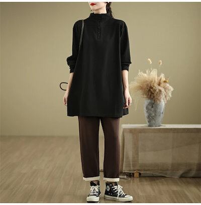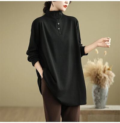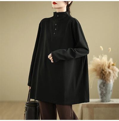 チュニック 大きいサイズ レディース 長袖 カットソー ハイネック チュニック 大人可愛い 無地 長袖tシャツ トップス インナー シンプル 着痩せ 大きいサイズ ゆったり 体型カバー サイドスリット