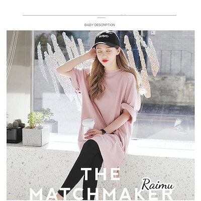 ロングTシャツ レディース Tシャツ ロング丈 半袖 ゆったり ゆるTシャツ ラウンドネック 無地 ドロップショルダー スリット入り 無地 春秋新作