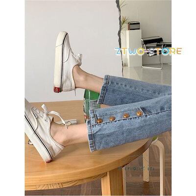 デニムパンツ アンクル丈 レディース 韓国 おしゃれ スリムジーパン ハイウエスト 裾ボタン ジーンズ カジュアル ボトムス 春秋夏 レトロ スキニーデニム 着やせ