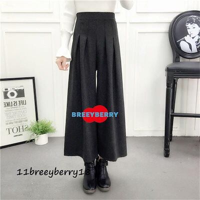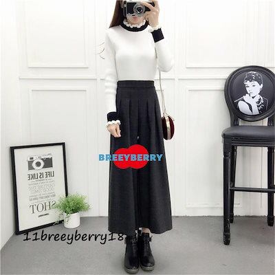 ワイドパンツ ガウチョパンツ レディース ハイウエスト アンクル丈 秋冬 厚手 ウエストゴム スカーチョ ボトムス きれいめ 体型カバー 大きいサイズ