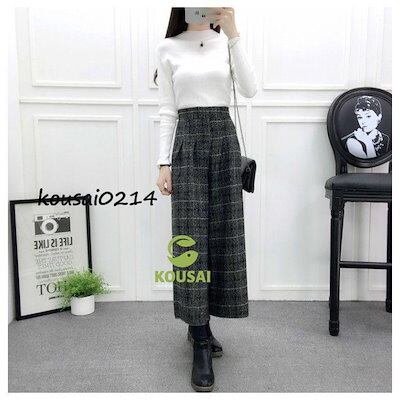 ウエストゴム ウール タッチ タック ワイド パンツ ボトムス ロング カジュアル 上品 レディース ワイドパンツ きれいめ アンクル丈 無地 柄 清楚