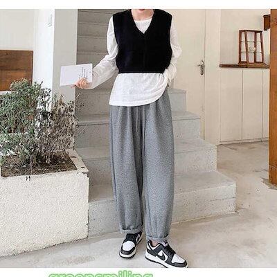 ロングパンツ チノパン レディース ゆったり ハイウエスト 着せ アンクル カジュアル ポケット付き 体型カバー 春 秋 ウエストゴム 紐 ロング 部屋着
