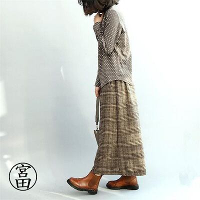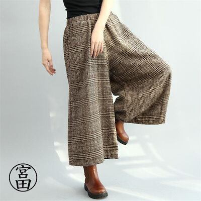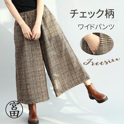 ワイドパンツ レディース チェック柄 秋冬 パンツ ロングパンツ 暖かい ボリューム ゆったり 体型カバー チェック柄パンツ アンクルパンツ 九分丈 大きいサイズ