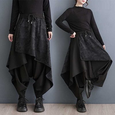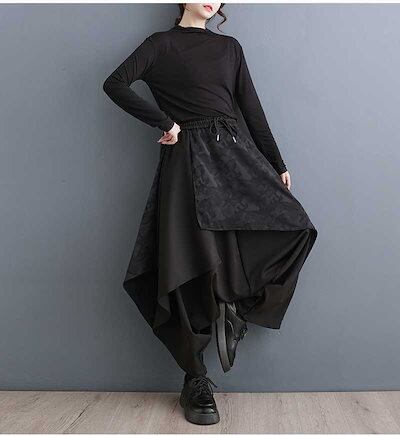 「ファットガール」 2024春新品 キュロットスカート 九分丈 ワイドパンツ レイヤード 多層 スラックス 体型カバー レディース ロングパンツ 2
