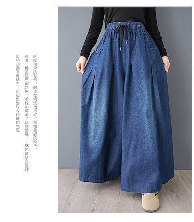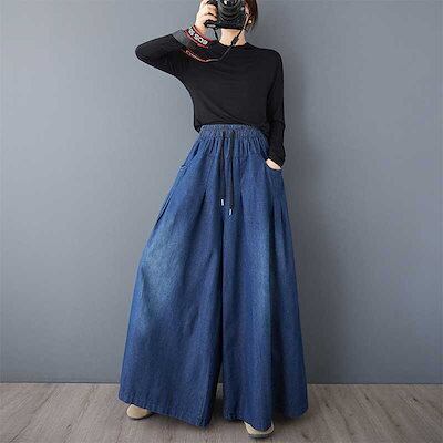 「ファットガール」 2025春 デニム ワイドパンツ ジーンズ フレア 大きいサイズ 体型カバー レディース ゴム ハイウエスト キュロットスカート メガ割