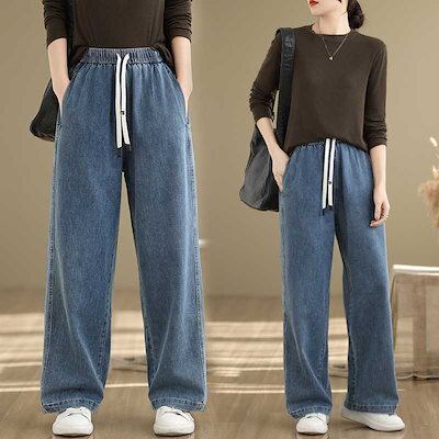 「ファットガール」 2025春 デニムパンツ ジーンズ ゴム ストレート レディース ロングパンツ メガ割