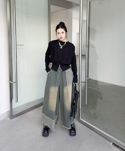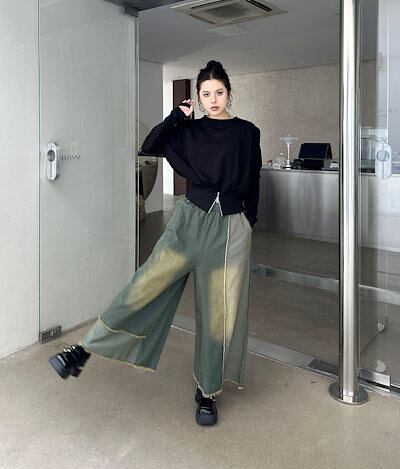 【J.Fashion】 2025春 デニムパンツ ドッキング色 ワイドパンツ ストレート おしゃれ レディース 関連商品購入可能 メガ割