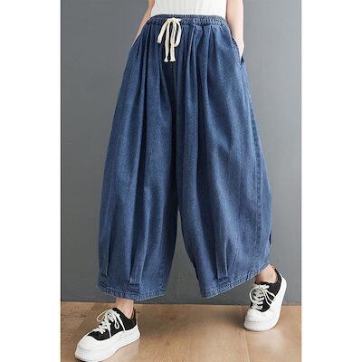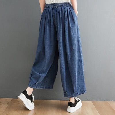 【GUANGYU】デニムパンツ レディース ワイドパンツ 韓国ファッション ウエストゴム ボトムス カジュアル ストレッチ 大きいサイズ ゆったり 旅行 ロング 大人