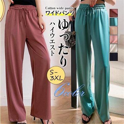 【GUANGYU】ワイドパンツ レディース ハイウエスト ボトムス カジュアル ストレッチ ゆったり ひんやり 春夏 韓国ファッション 仕事 旅行 ロング 大人