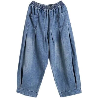 【GUANGYU】デニムパンツ レディース ワイドパンツ ウエストゴム ボトムス カジュアル ストレッチ 大きいサイズ ゆったり オールシーズ 仕事 旅行 ロング 大人