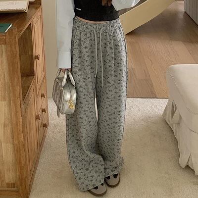 2024春の新韓系オールインワン花柄カジュアルパンツウエストワイドパンツ女性
